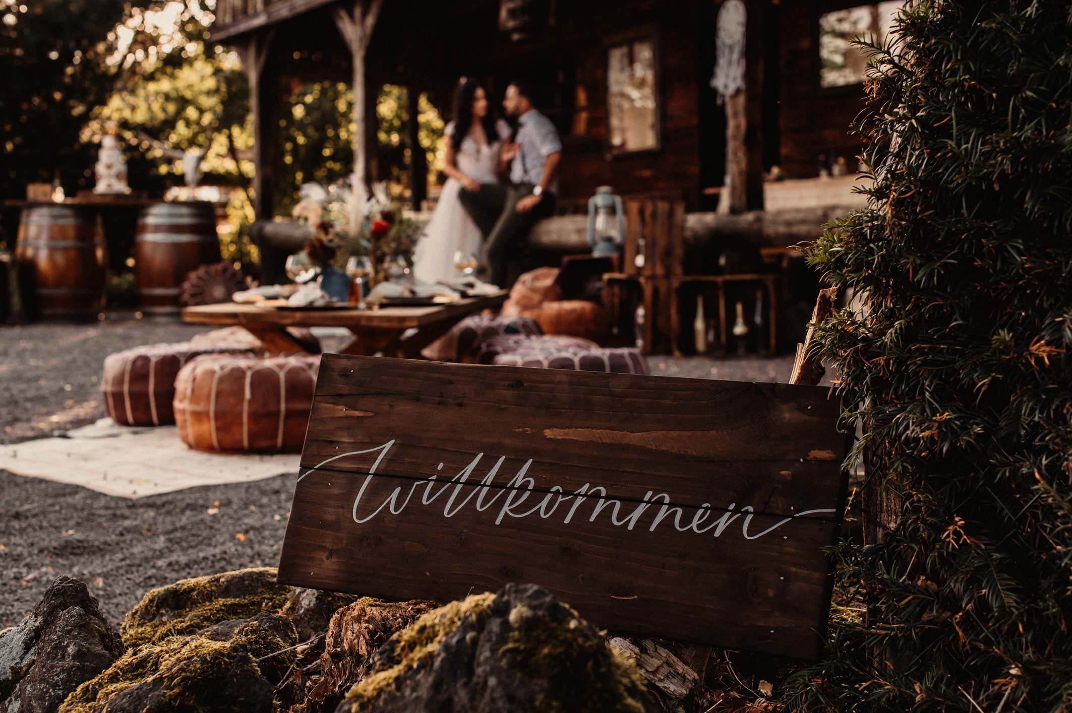 Gefeiert wird dann natürlich, standesgemäß im Saloon der Ranch oder ebenfalls auf der Wiese. Übernachten kann man sogar auch mitten im Pferdestall oder im hauseigenen Gefängnis 😉 Natürlich wurde das ganze Konzept perfekt auf die Ranch abgestimmt. Papeterie, Tischdeko, die Sitzsäcke, Torte, die freie Trauung und und und… Ein fantastisches Western - Konzept mit einem Hauch BOHO, die den zeitgenössischen Wilden Westen aufgreift, dennoch die Moderne von heute nicht weniger eingebunden hat. Mir war sofort klar, welches meiner Kleider in diese Kulisse gehört, denn bereits bei der Onlinemodenschau meines Designers, sprang mir sofort der Gedanke „Westernkleid“ in den Kopf, als das Model darin über den Bildschirm lief. Zwei Tage nachdem es bei uns eingetroffen ist, wurde ich für dieses Shooting angefragt und musste wirklich lachen! Was für ein riesen Zufall! Oder war es Schicksal? 😉